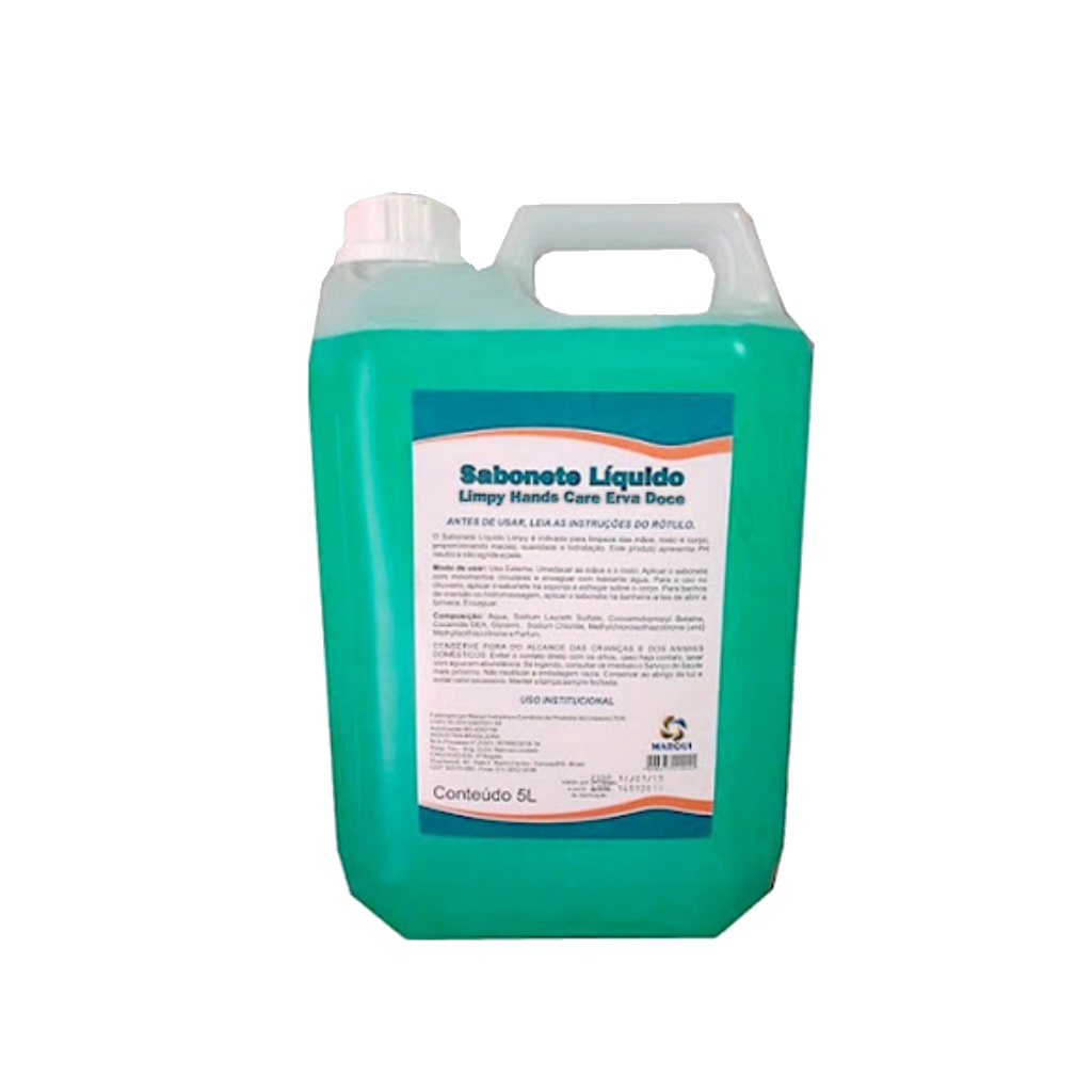 Palavras-chave: sabonete líquido, perolado, Marqui, Limpy Hands, Deoline Premisse, erva doce, 5 litros, higiene, hidratação, pele suave, fragrância agradável, uso profissional, grande fluxo